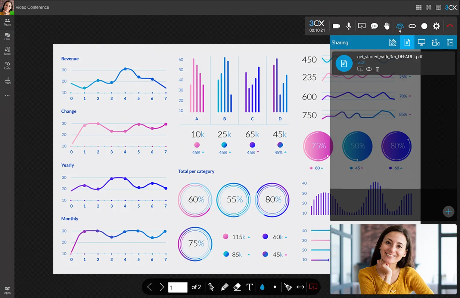 Start video conferencing without ever leaving your dashboard. No need to switch apps or log in to a different provider account. Your customers can join your video call with the click of a link - no complicated software for them to download. Be captivating with integrated whiteboard, uploading PDFs, polling and screen sharing.
